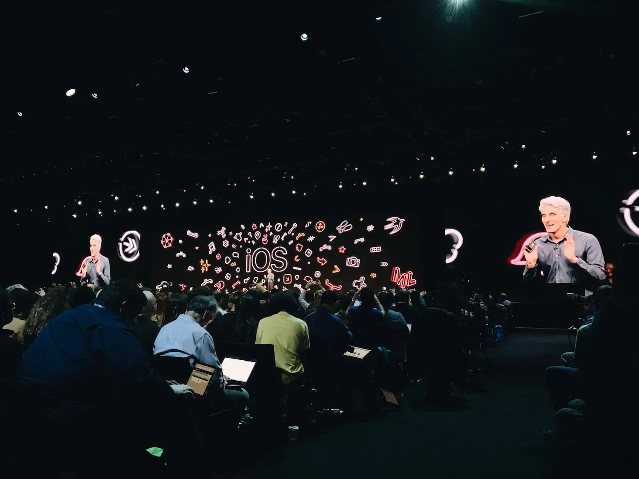 到十時正,Tim Cook 便會正式出場主持 Keynote。不同的資深工程師如 Criag 會陸續上台介紹今年的更新。十分幸運能參與到今年的 Keynote,因為今年所發佈的產品和 Framework 如 Mac Pro、iOS 13、macOS Catalina、Project Catalyst 和 SwiftUI 都可謂相當重要,稱得上是近十年最精彩的一次發佈,沒有令人失望。
