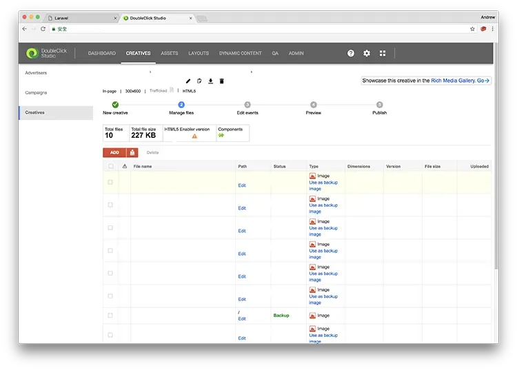 After that, just publish your creatives by clicking the Publish icon at top right corner. Switch back to DoubleClick Studio, and click the Creatives tab at the navigation bar.